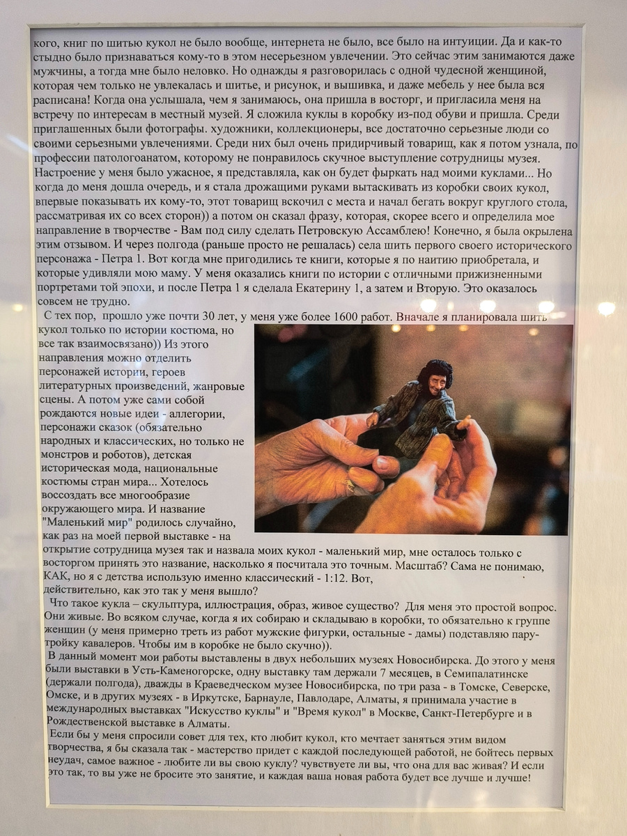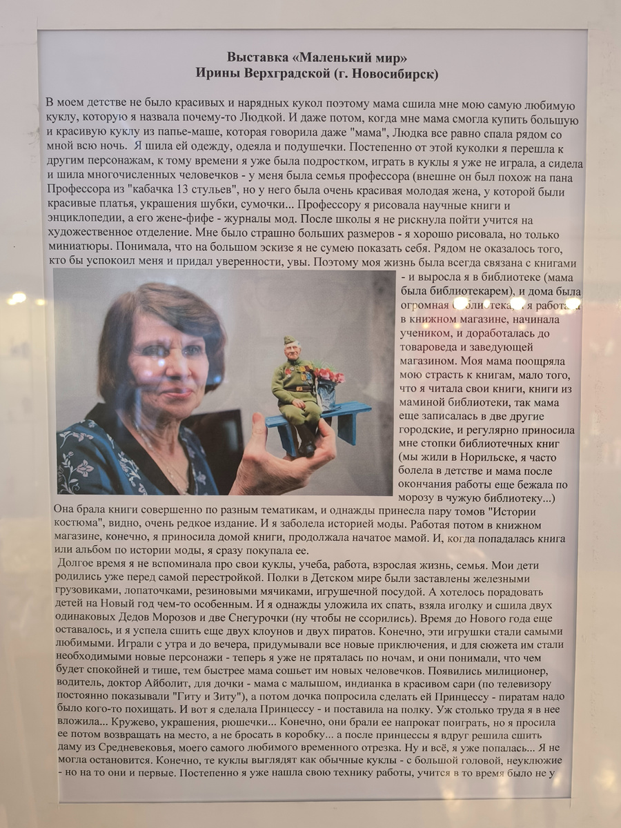 В самом начале января мне посчастливилось погрузиться в удивительный мир миниатюрных кукол на выставке в усадьбе-музее В. П. Сукачёва. Экспозиция под названием «Маленький мир», представляющая творчество талантливой мастерицы, завершилась первого февраля, и теперь я хочу поделиться своими впечатлениями от этого уникального события.