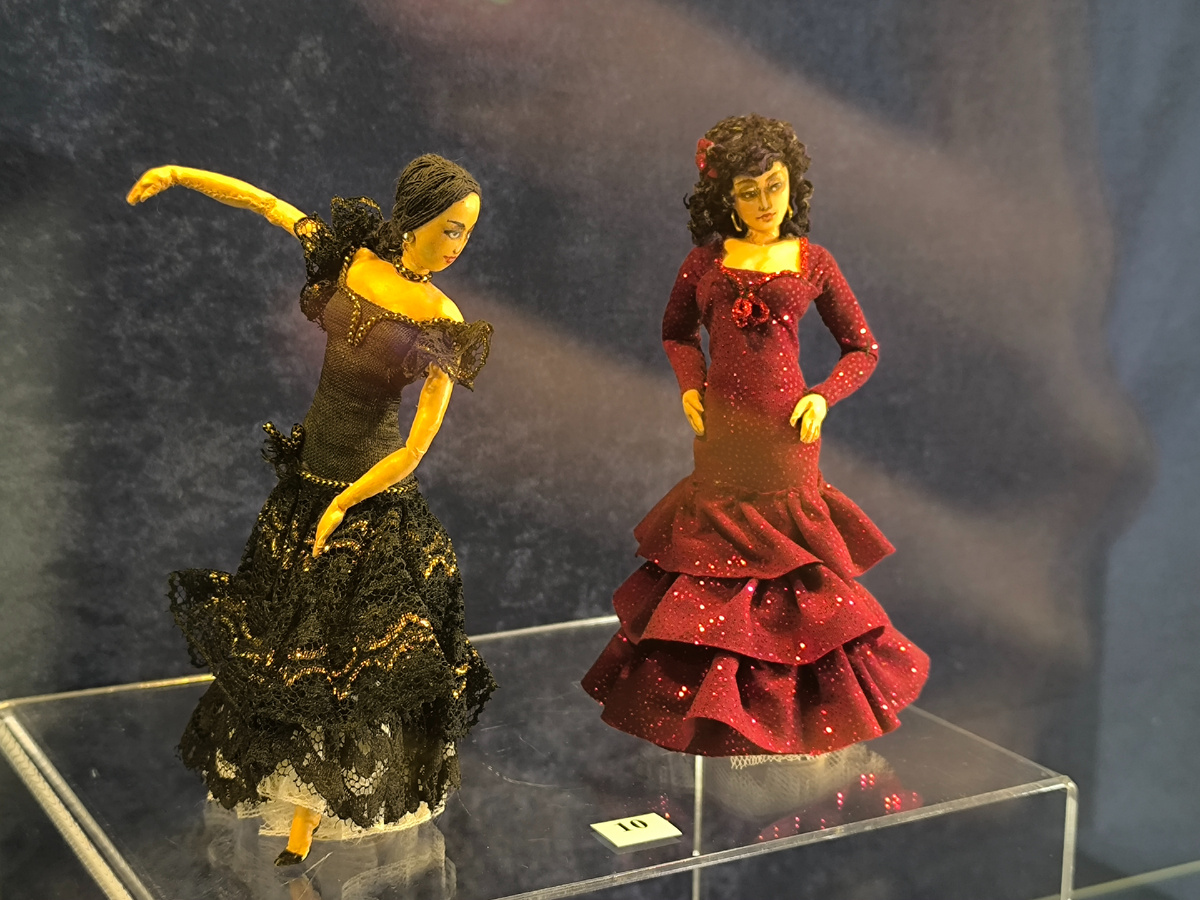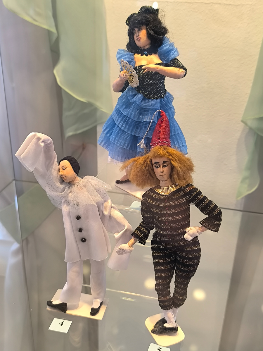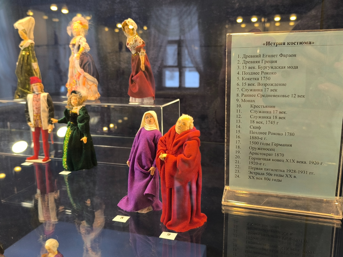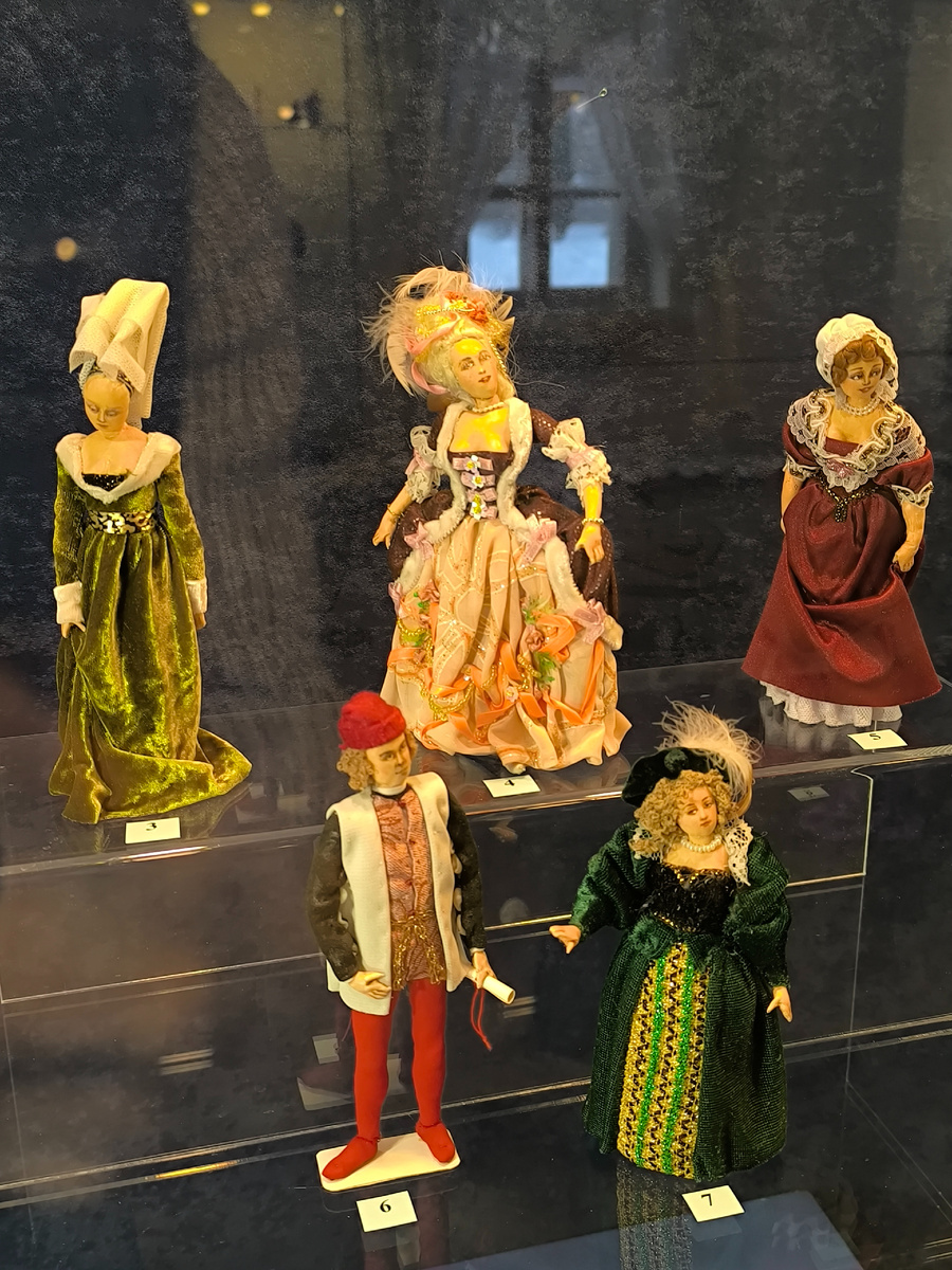Поражал масштаб работ — от 4 до 18 сантиметров! При такой миниатюрности детализация была феноменальной: крошечные пуговицы, тончайшая вышивка, микроскопические аксессуары. Это требовало невероятной точности, терпения и остроты зрения.