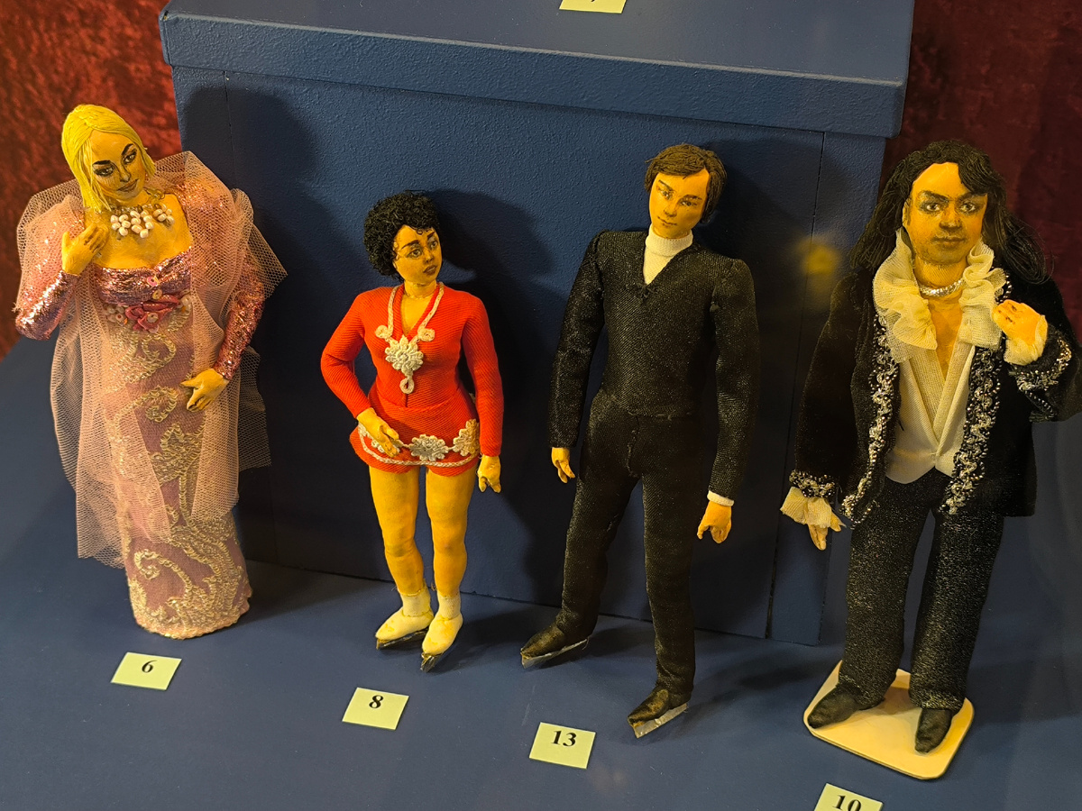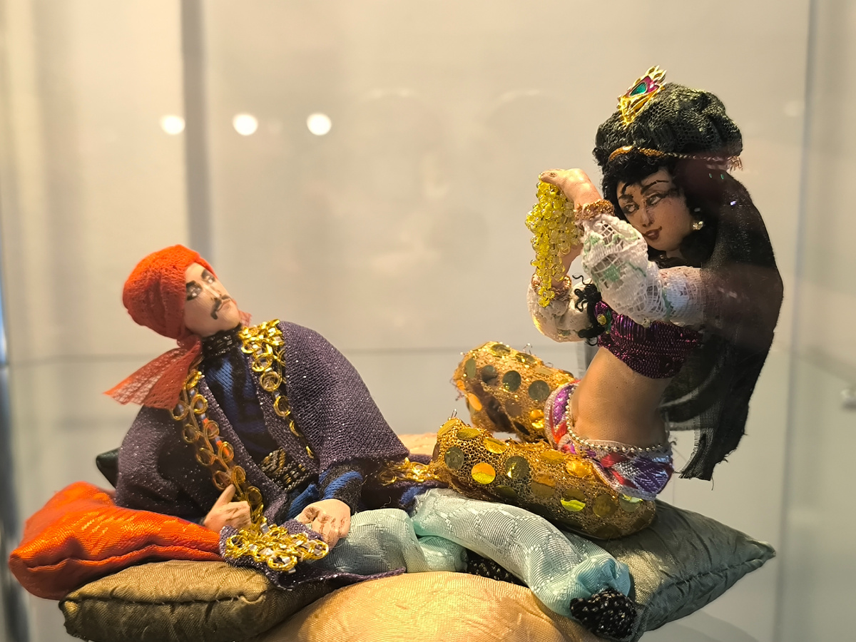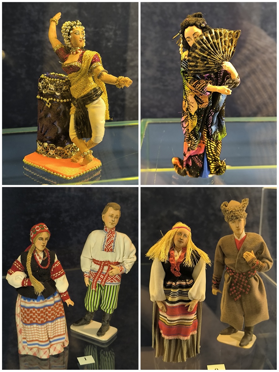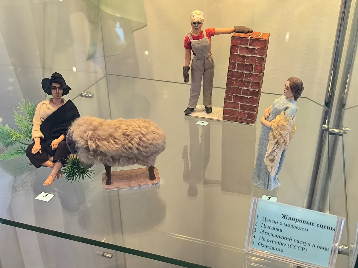 Поражал масштаб работ — от 4 до 18 сантиметров! При такой миниатюрности детализация была феноменальной: крошечные пуговицы, тончайшая вышивка, микроскопические аксессуары. Это требовало невероятной точности, терпения и остроты зрения.