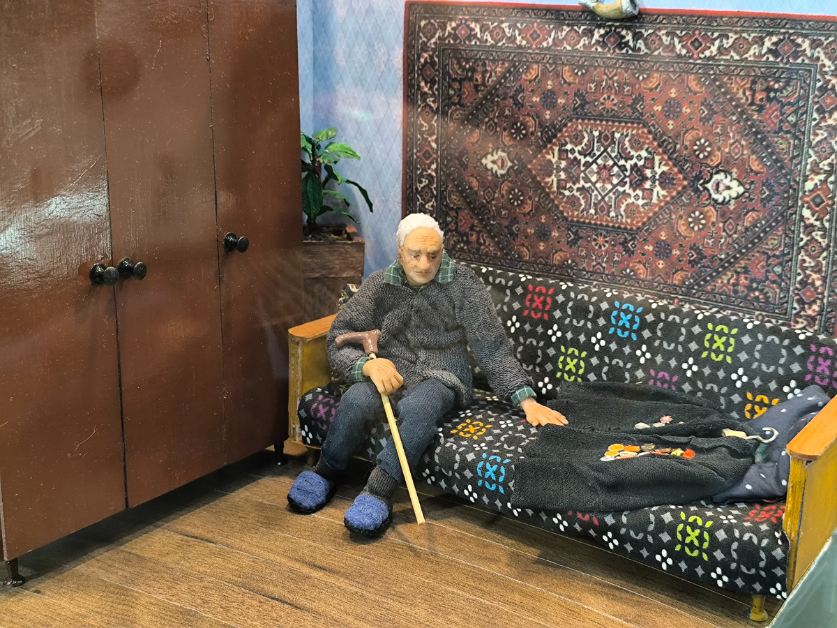 Но самое сильное впечатление на меня произвела серия «Дорогие мои старики». Эти работы — не просто мастерство, это гуманистический манифест. В этих миниатюрных фигурках с их морщинками, спокойными позами, простой одеждой была заключена огромная жизненная правда. Детали — икона в углу, чашка на столе, блистер от таблеток — рассказывали целые истории одиночества, покоя, прожитых лет. Это было настолько честно и пронзительно, что щемило сердце. Искусство здесь выполняло свою высшую функцию — заставляло сопереживать, видеть тех, кого часто не замечаешь в повседневной суете.