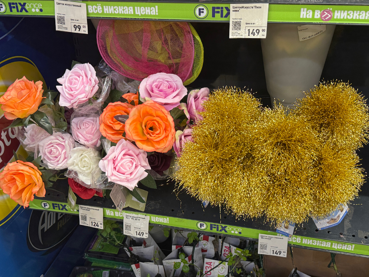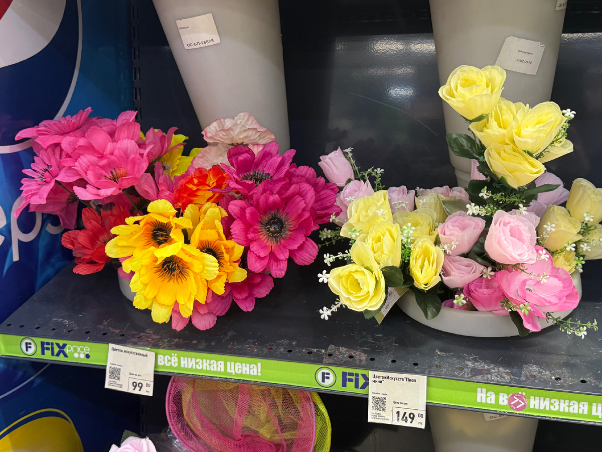 Далее я заметила множество искусственных цветов. Их цена значительно ниже, чем в специализированных магазинах, а качество, вероятно, будет сопоставимым. В апреле многие посещают кладбища, поэтому такие изделия могут быть весьма актуальны. Если же вам они не требуются — значит, вы счастливчик.