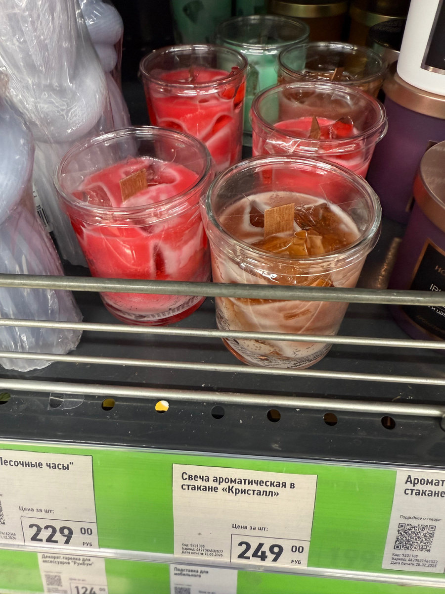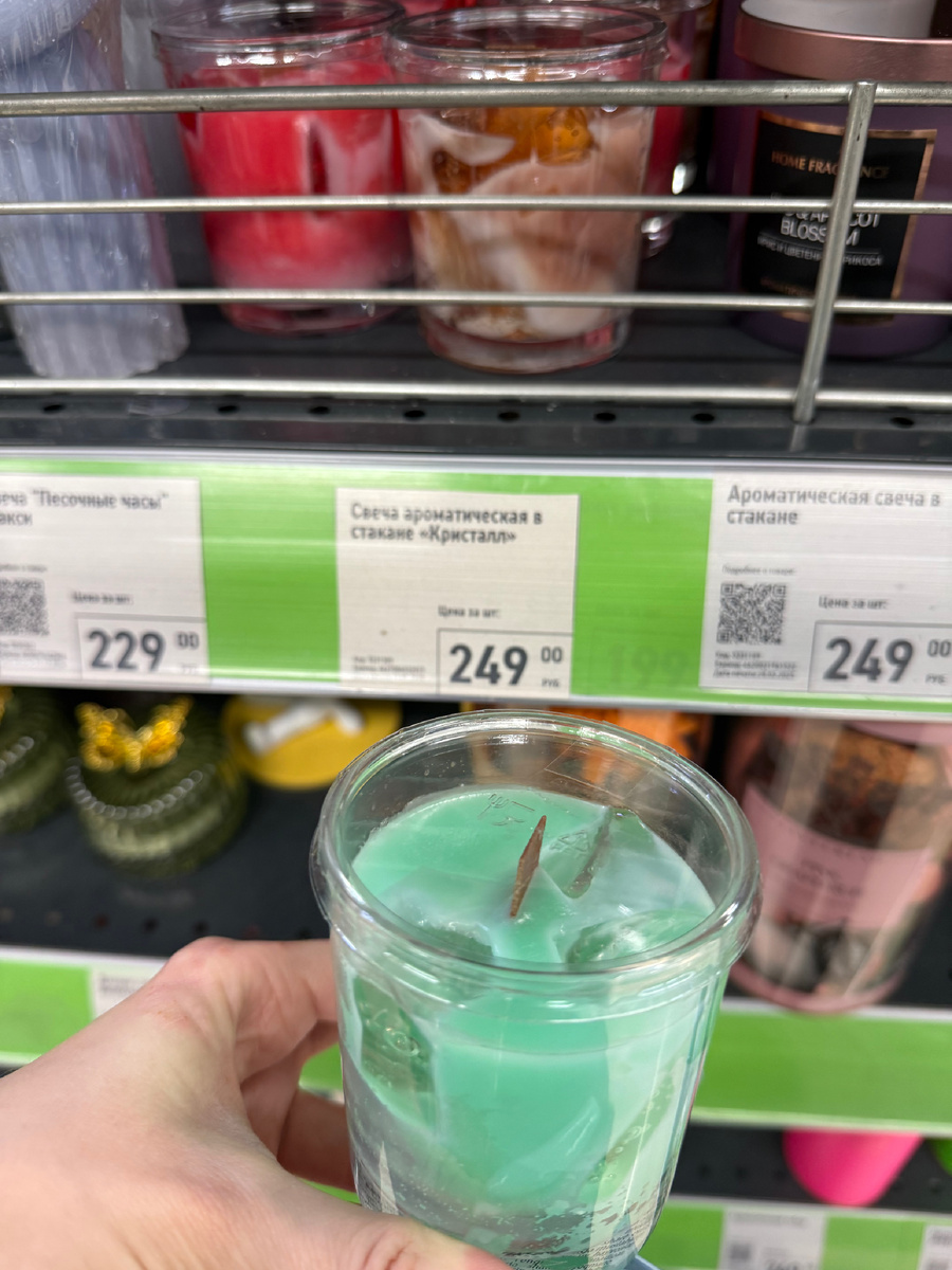 Появились оригинальные свечи в стакане «Кристалл» с мраморным эффектом. У них широкий деревянный фитиль, который, как говорят, при горении издаёт треск, напоминающий звук костра. Мне больше всего понравились мятный и красный оттенки: они будут атмосферно смотреться в домашнем интерьере. Аромат у свечей лёгкий, не слишком навязчивый.