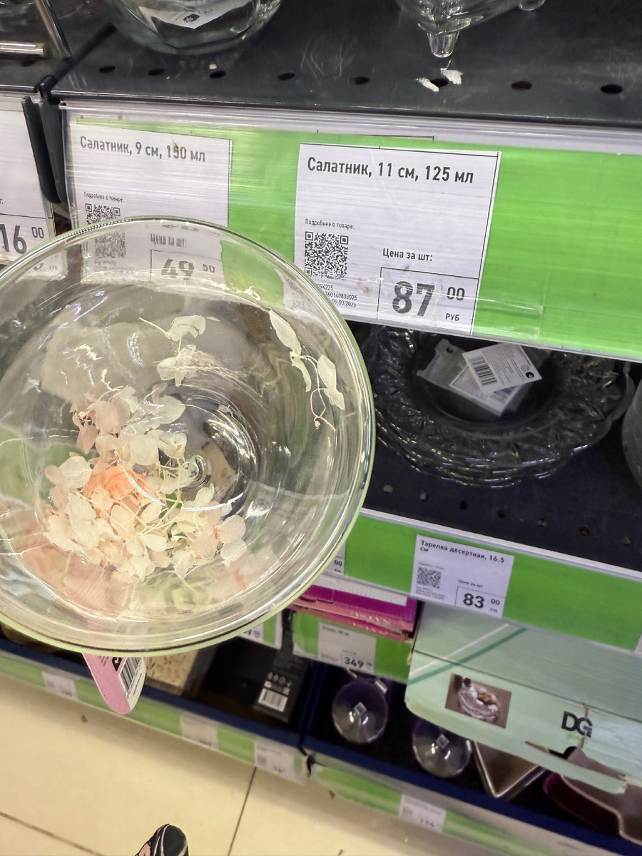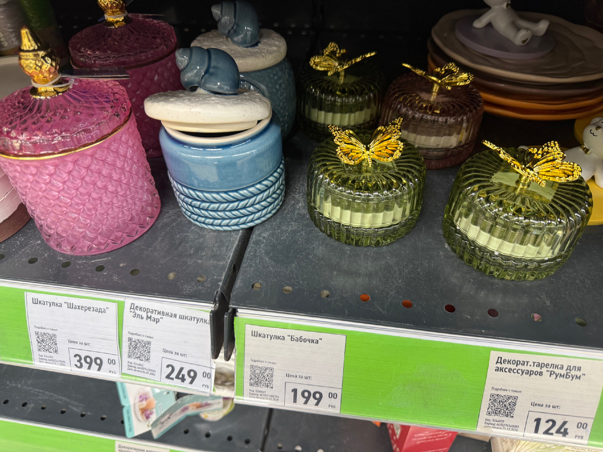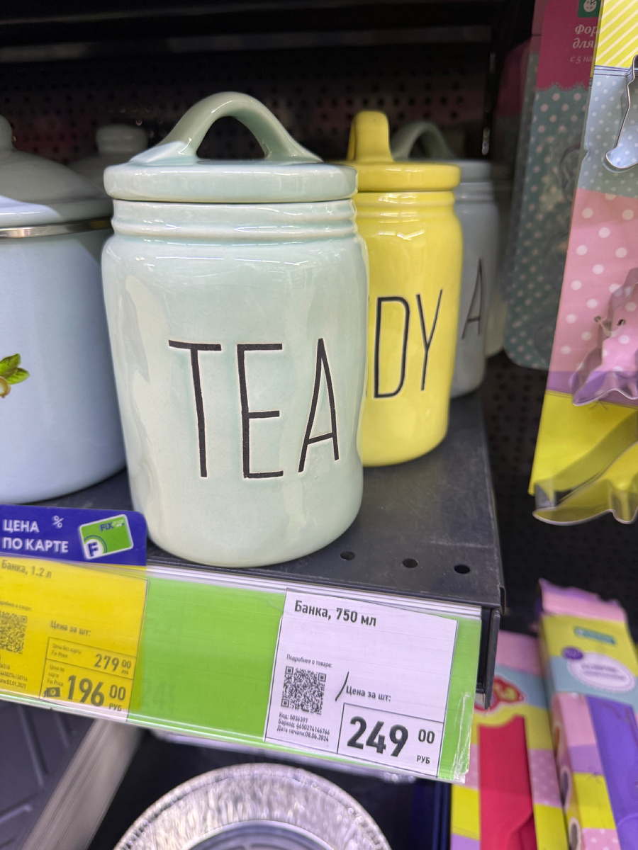 Из посуды привлекли симпатичные минималистичные банки. Чашечки плоские с перламутровым отливом — в них удобно есть кашу или суп. А вот весенняя чашка с цветами (предполагаю, сакура?) не заслуживает внимания. Во-первых, раньше были симпатичнее. Во-вторых, мне попалась бракованная. Если бы она была нормальной, я бы оценила её преимущества, но сомневаюсь, что она выдерживает высокие температуры. Я наливала туда горячую воду, и чашка лопнула. Также были очень весенние чайники, но с несовременным дизайном. К сожалению, они мне не понравились, и цена завышена.