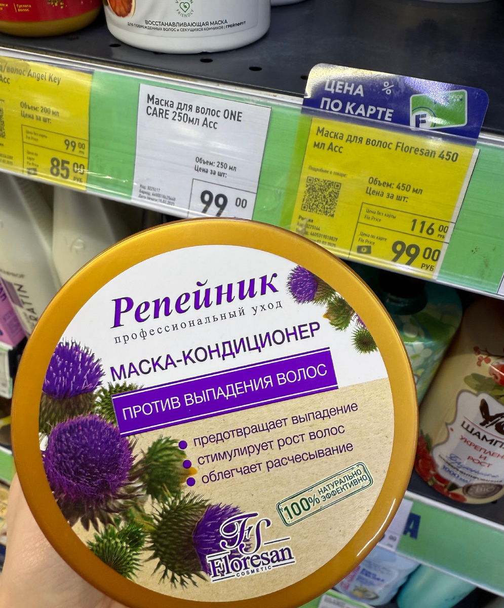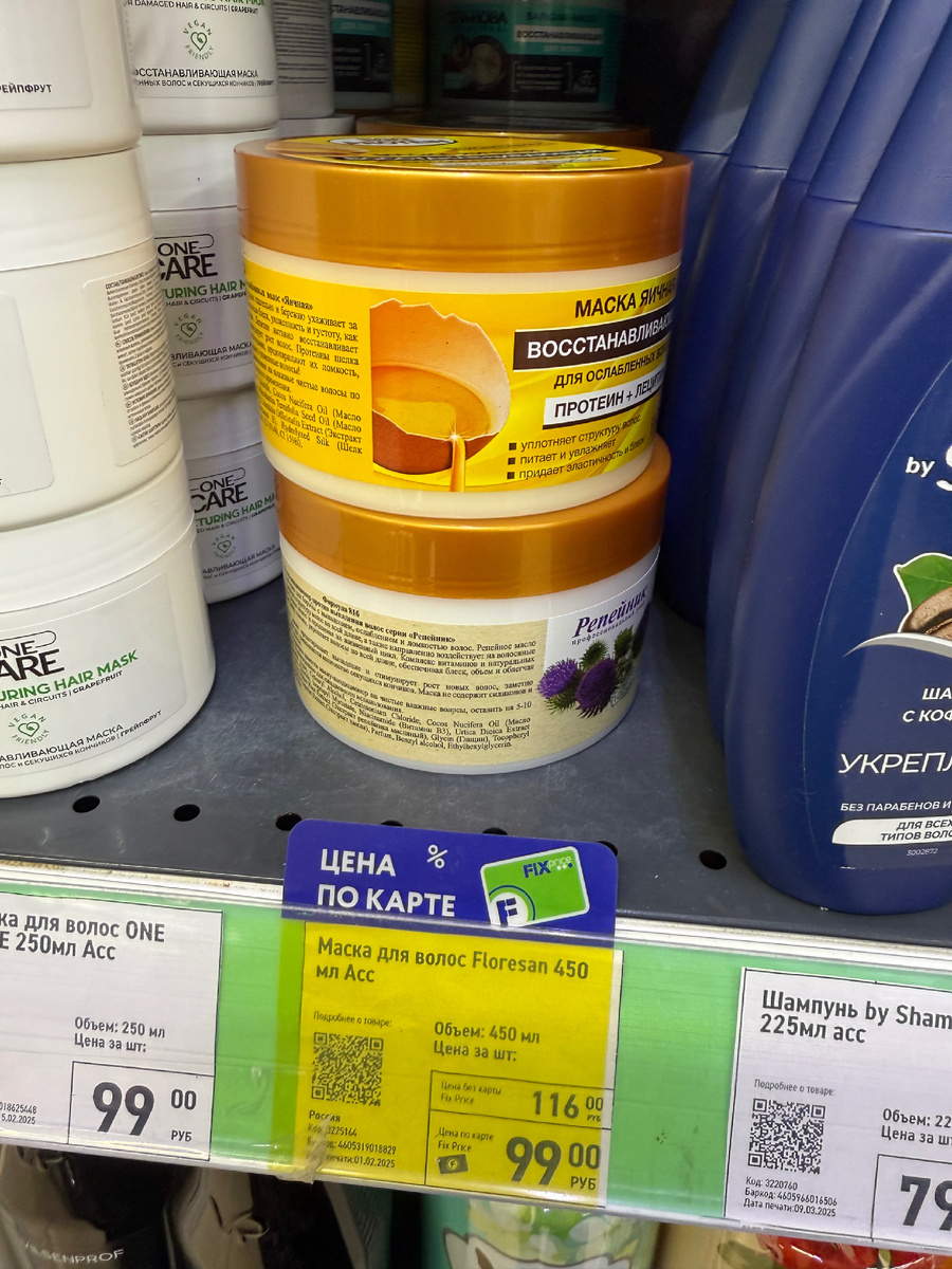 Российская бюджетная марка Vilsen теперь представлена кремом для лица с церамидами и маслом ши (дневной и ночной). Выглядит достойно, ещё и в коробочке. Также были маски для волос от Floresan: с яйцом и с репейником. Объём очень хороший за такую символическую плату. Качество нужно проверять — мне кажется, маска с яйцом может быть лучше, чем с репейником. Они направлены на восстановление и укрепление. Я помню, пользовалась репейной серией Floresan: разогревала масло и наносила на корни, но оно плохо смывалось, а маска не впечатлила — волосы были неприятными на ощупь. Возможно, просто не подошла, но покупать её выгоднее именно в Fix Price.