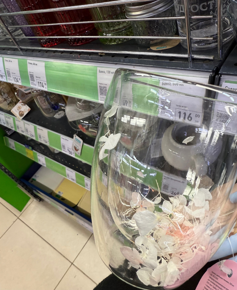 Первое, что привлекло моё внимание, — это предметы для украшения дома. Например, сухоцветы в крафтовой упаковке, стилизованной под букет. Честно говоря, такую композицию несложно сделать самостоятельно: достаточно выехать на природу или попросить у знакомых. Однако выглядит это вполне эстетично, и я планирую взять идею на заметку для дачного творчества.