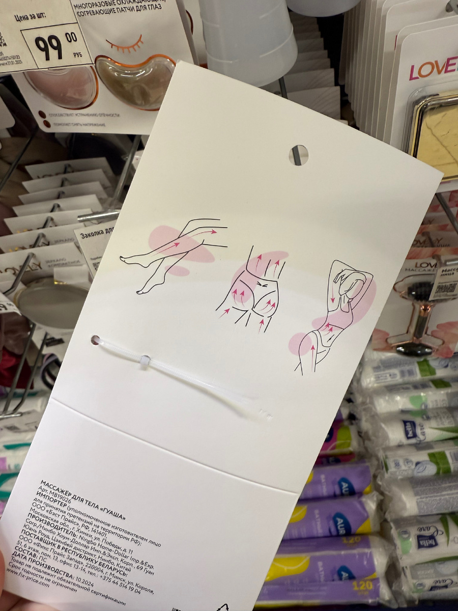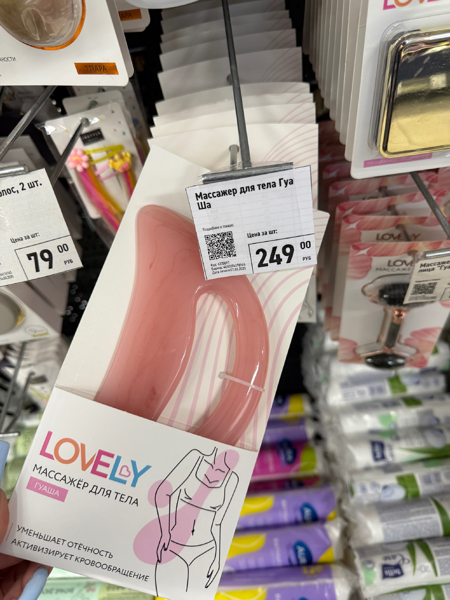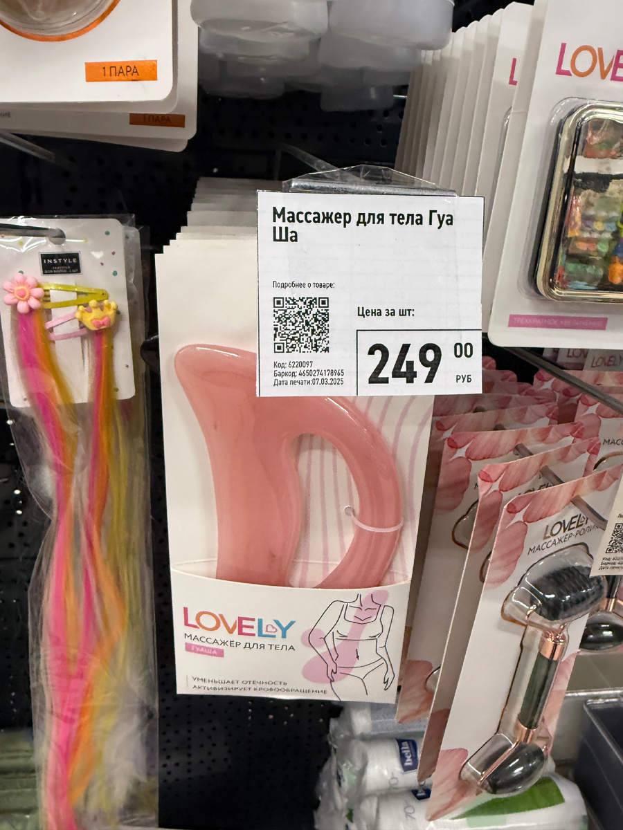 В категории красоты много новинок, прежде всего для подготовки к лету. Массажёр для тела Гуа Ша — подходит для борьбы с целлюлитом и как помощник при похудении. Впервые вижу такой именно для тела, обычно встречаются для лица. Думаю, он неплохо стимулирует кровообращение. В наличии были и классические роллеры для лица: одна сторона гладкая, другая ребристая. На задней стороне есть схема массажа. Я пыталась определить материал скребка, но информация отсутствует, что наводит на мысль, что это не камень, а твёрдый пластик.
