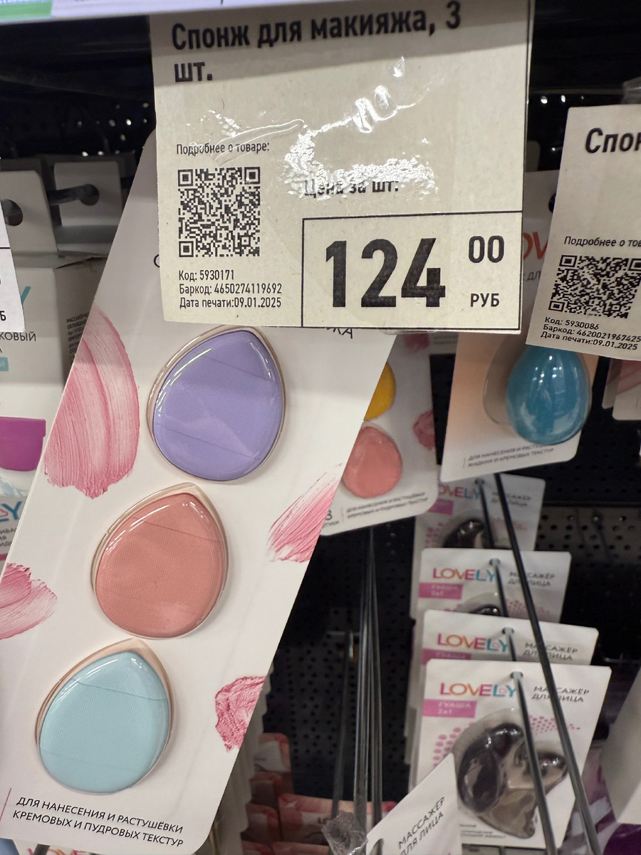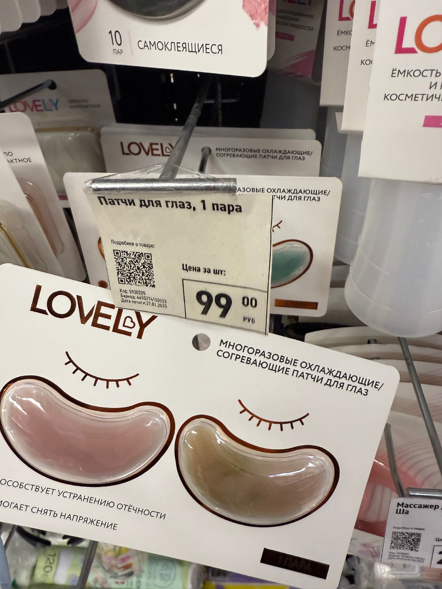 Многоразовые патчи для глаз можно разогревать или охлаждать. Для меня это сомнительная бьюти-вещь: холодные патчи из холодильника снимут отёки, но могут спровоцировать купероз. Очень понравились спонжи для макияжа — ими удобно растушёвывать консилер под глазами и в других зонах. Интересно было бы оценить качество материала. Такие спонжи подойдут тем, кто носит короткие ногти.