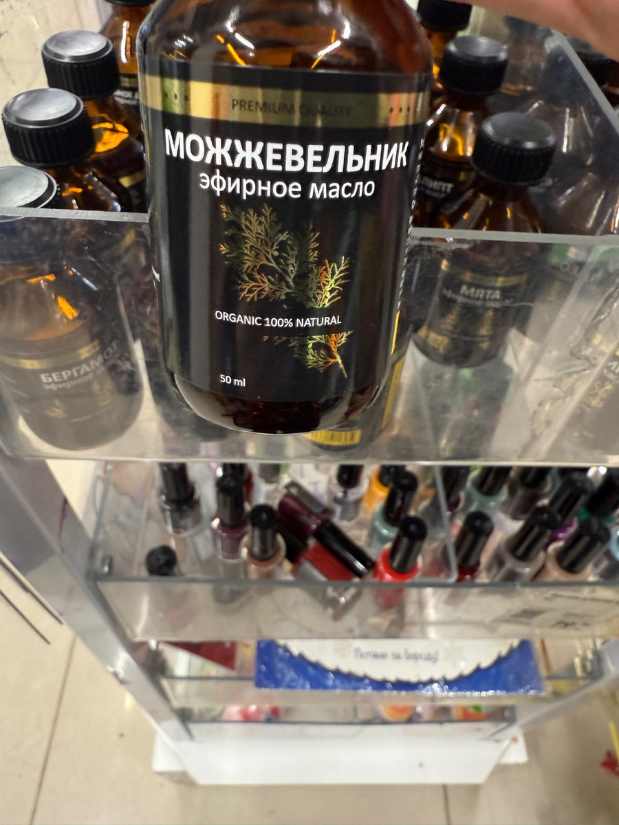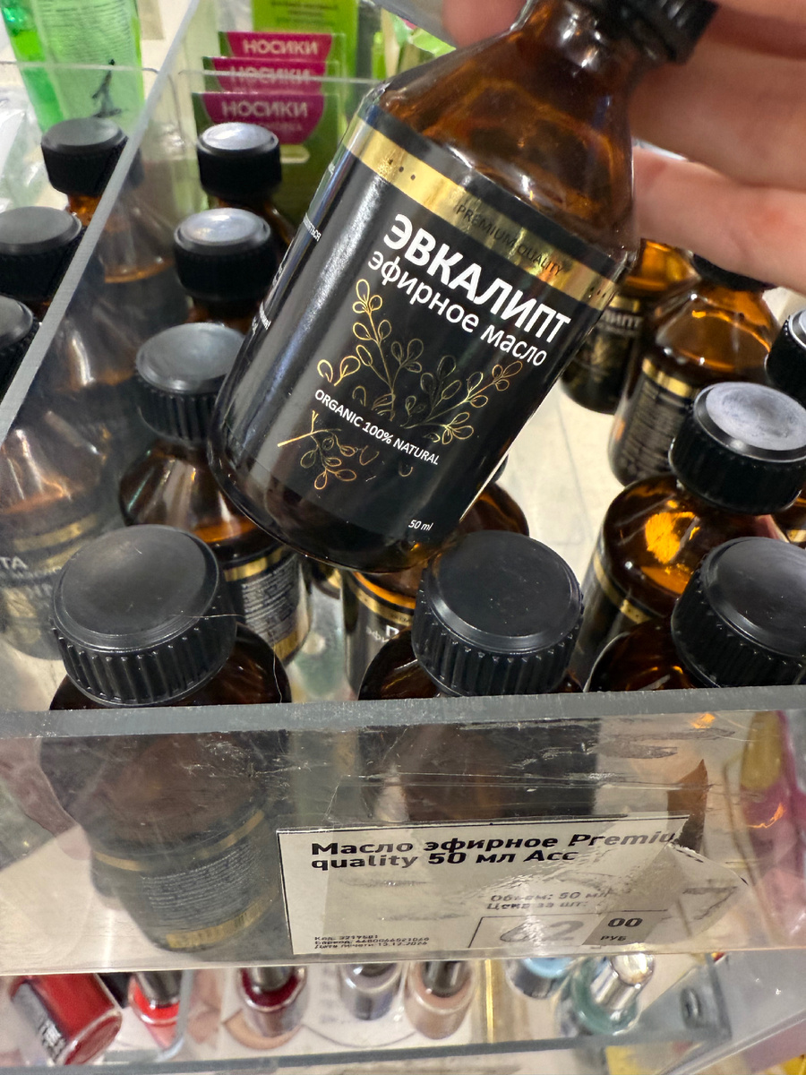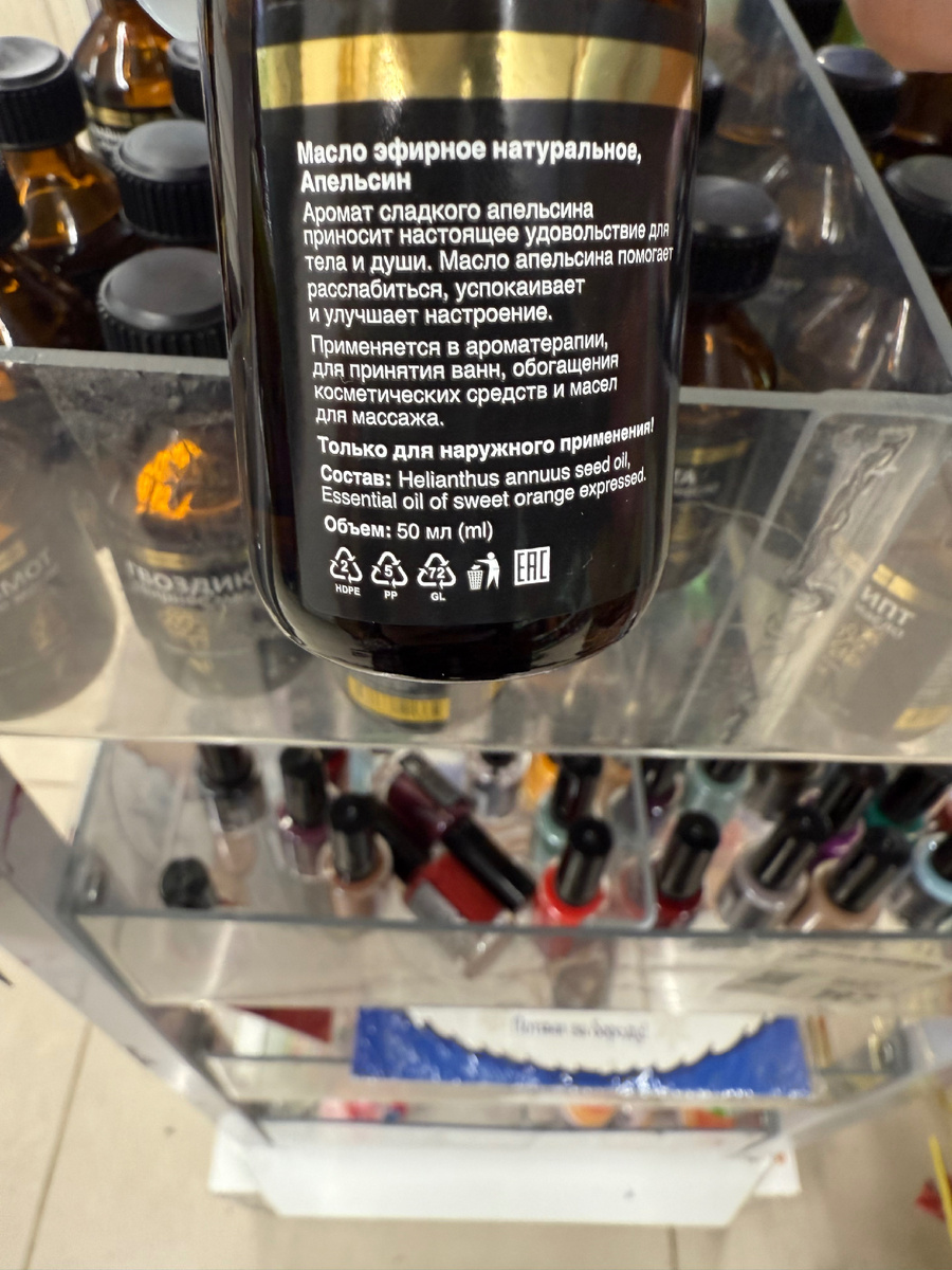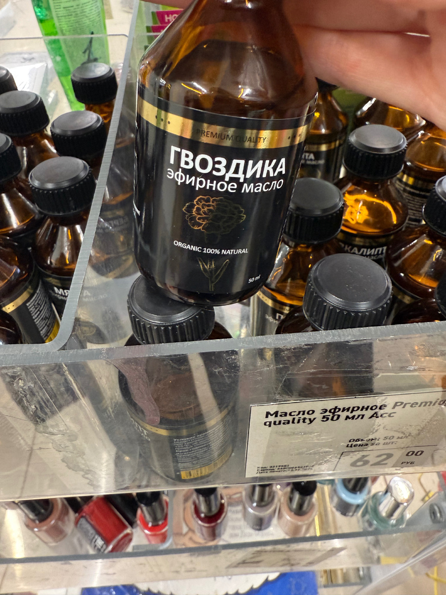 В прикассовой зоне обнаружила большой ассортимент эфирных масел: гвоздика, мята, пачули, лимон, апельсин, можжевельник. Стоимость 62 рубля — неплохо, хотя в аптеке может быть не дешевле. Их можно добавлять в уходовую косметику или использовать в аромалампе.