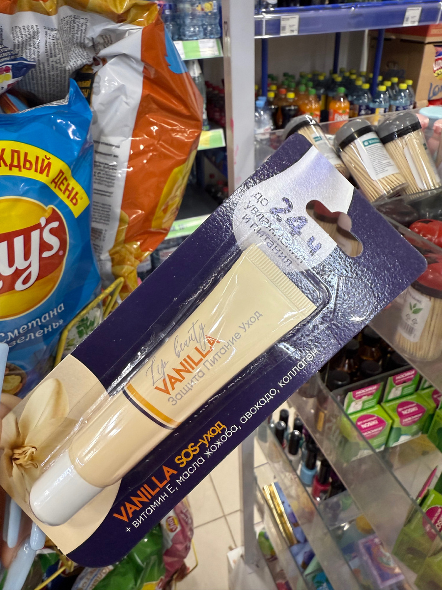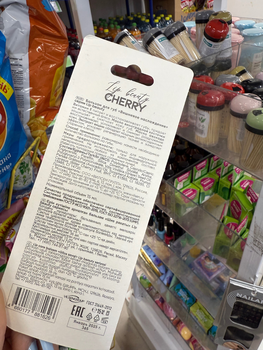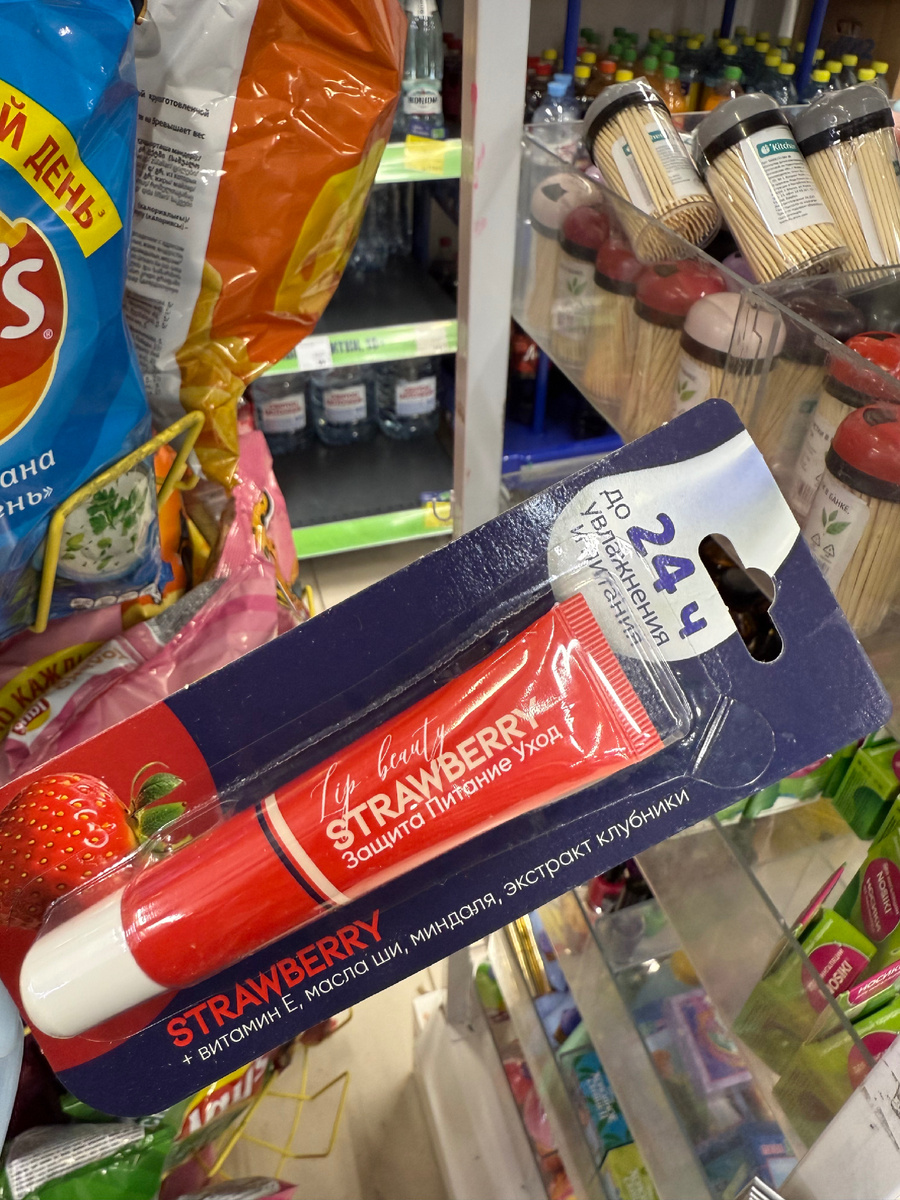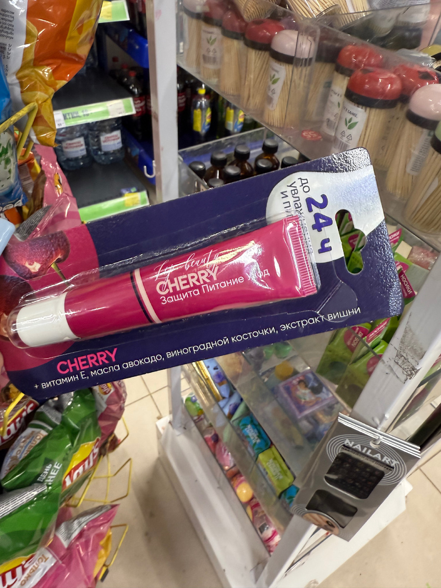 Больше всего меня привлекли достаточно большие бальзамы для губ российского производства. Они с разными вкусами: ваниль, вишня, клубника, бабл-гам. Вишнёвый и клубничный, думаю, цветные. За 15 мл цена просто подарочная.