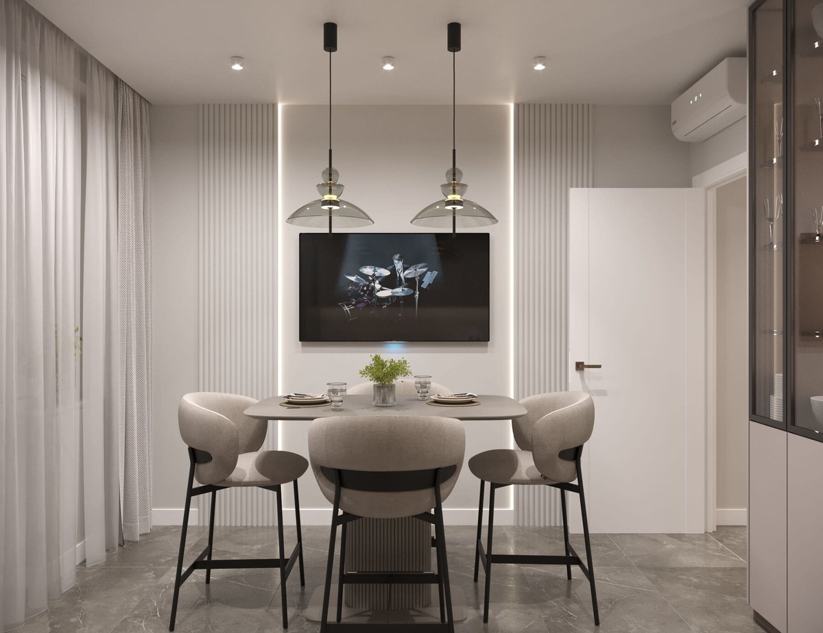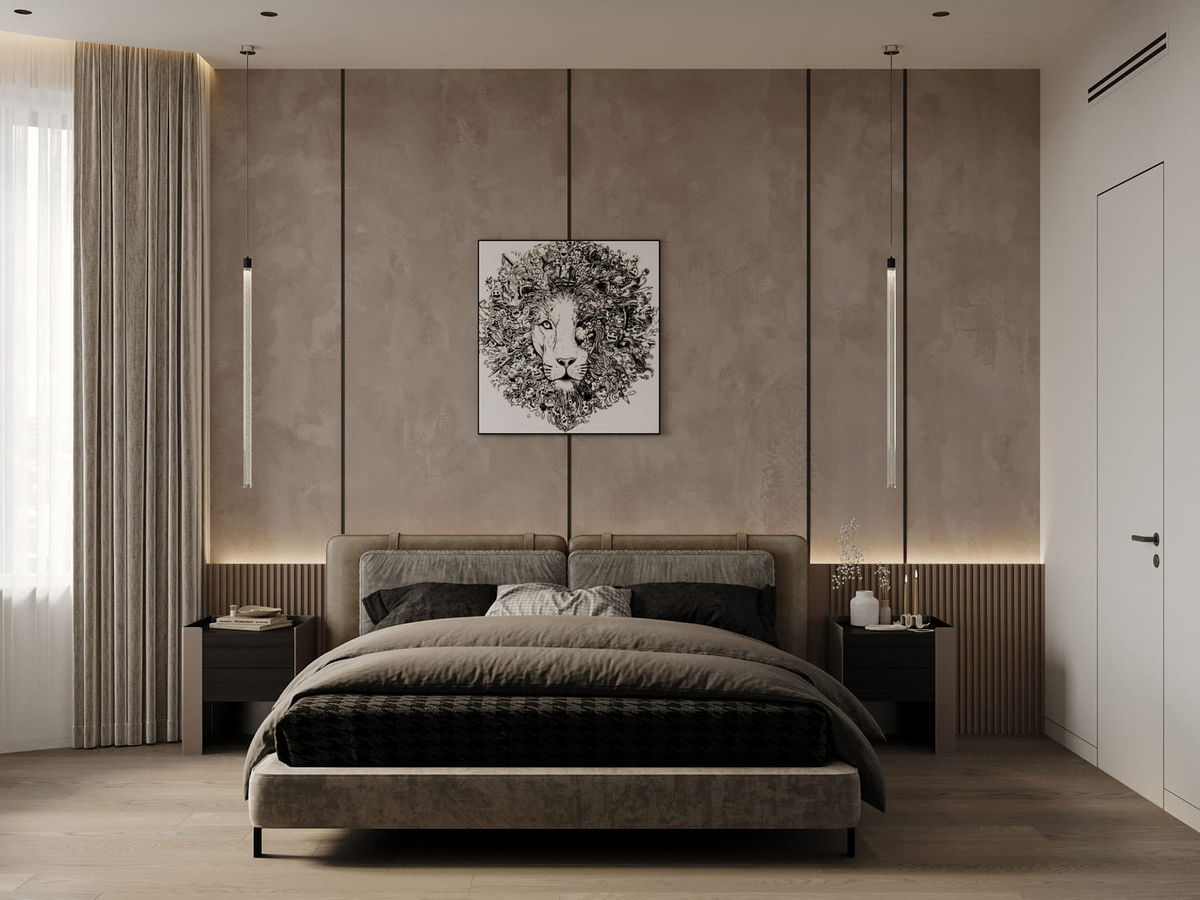 Так называемый универсальный бежевый часто становится синонимом скуки и безликости, особенно если он приобретает неприятный розовато-жёлтый оттенок под тёплым светом. Более современное и стильное решение — использование сложных, «приглушённых» оттенков бежевого с добавлением серого или зелёного подтона. Такой цвет выглядит дороже и спокойнее. Ключ к успеху — сочетание с контрастными элементами: тёмным плинтусом, молдингами, чёрной фурнитурой или металлом.