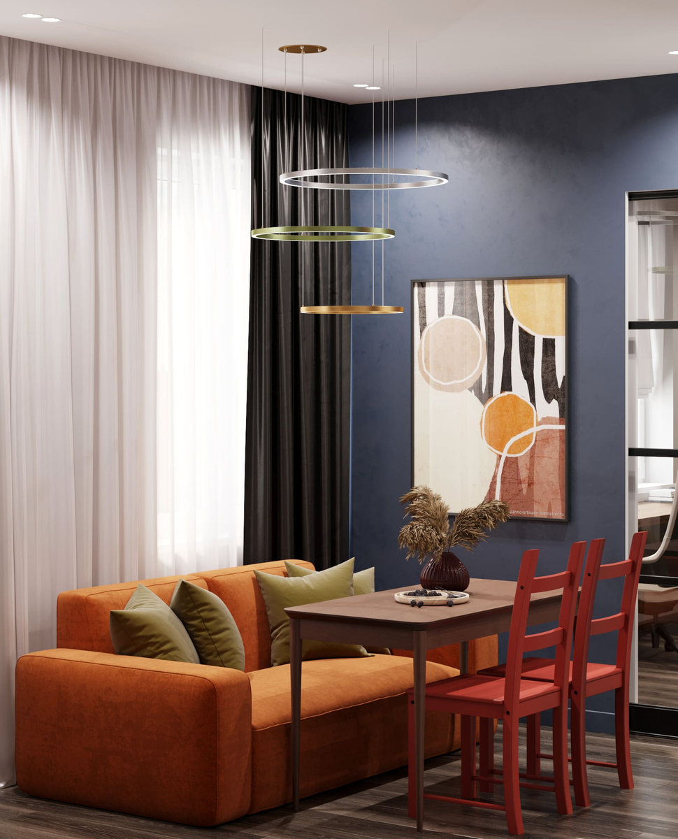 Даже самый удачный цвет, использованный повсеместно, вызывает визуальное утомление. Профессиональный дизайн строится на зонировании. Для разных функциональных зон подбирается своя цветовая палитра: расслабляющие тёплые тона для спальни, более энергичные — для кухни, практичные — для прихожей. Связующим элементом, создающим целостность, может служить акцентный цвет, повторяющийся в деталях интерьера по всей квартире.