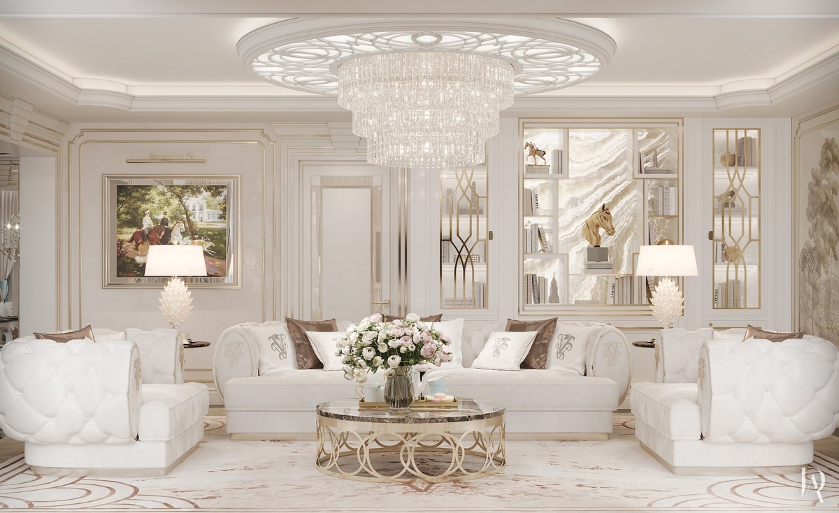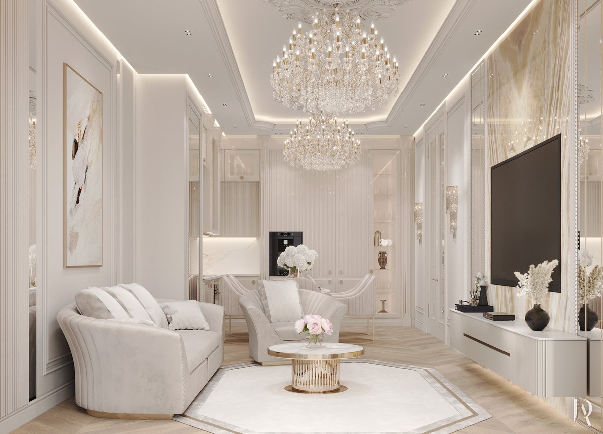2. Белый интерьер квартиры с элементами классики