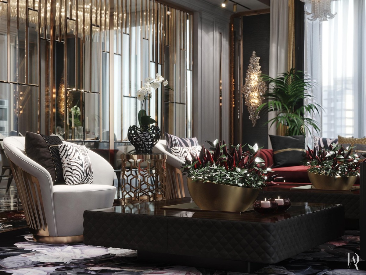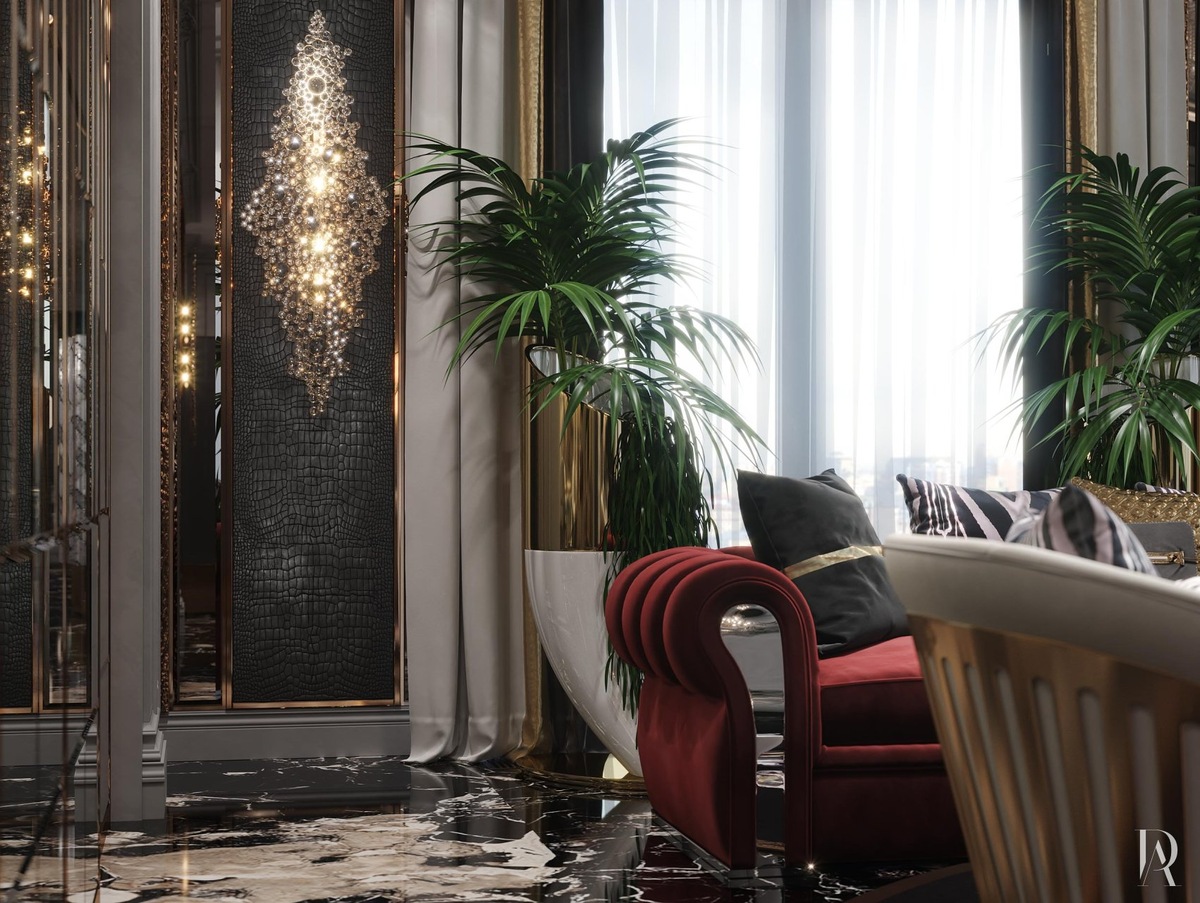 Стиль арт-деко, который в интерьере является материальным воплощением роскоши, идеально подходит для оформления объектов недвижимости премиум-класса. Запоминающиеся орнаменты, экзотические текстуры, уникальная мебель и обилие позолоты — всё это формирует атмосферу изысканности, которая импонирует творческим личностям и нестандартно мыслящим людям.