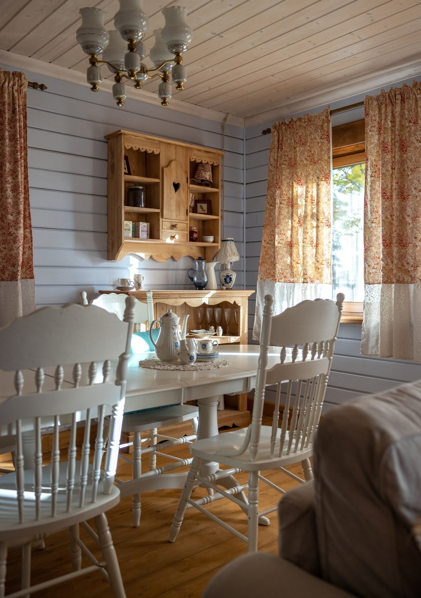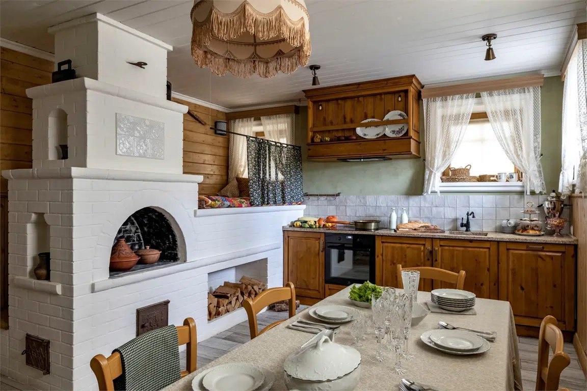 Общая атмосфера: Создается ощущение тепла, уюта и простоты. Интерьер выглядит естественным, близким к природе, словно переносит нас в прошлое, где время текло медленнее.